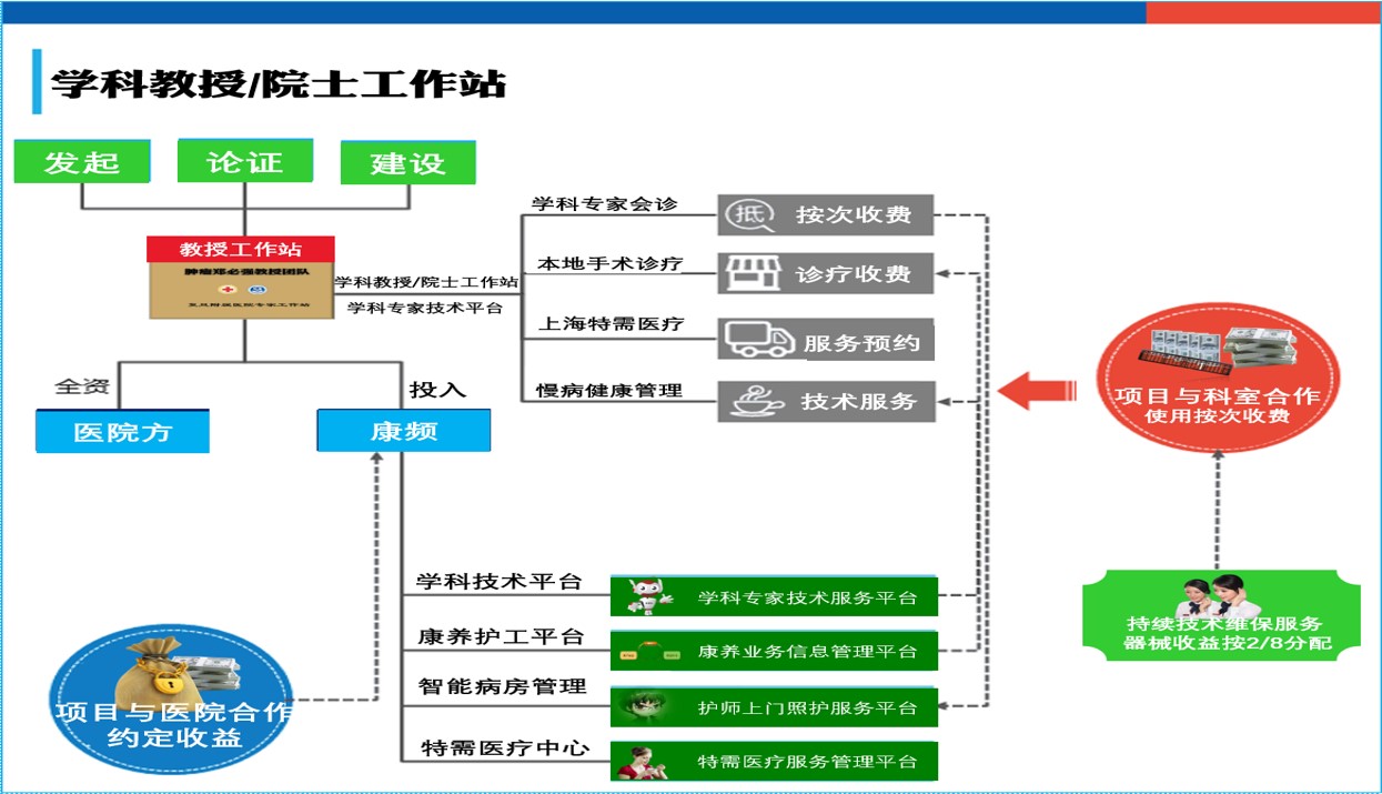 基于智慧智能医疗平台+云存储+,协助符合条件的医疗机构建立国家医学中心或区域医疗中心。帮助区域以医联体为载体平台,实现院前医疗急救机构与各中心形成网络,实现患者信息院前院内共享,构建快速、高效、全覆盖的急危重症医疗救治体系。设立教授工作站 : 学科教授为学科技术带头人领衔学科建设,学科专家定期巡诊,手术预约。挂牌教授工作站;开展特需医疗活动 ...